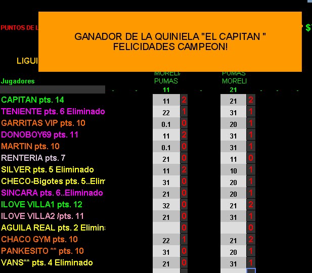 ganador de la quiniela el CAPITAN, con este resultado se cancela en forma indefinida la quiniela