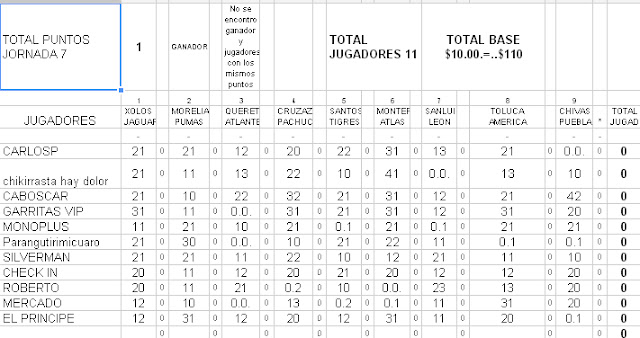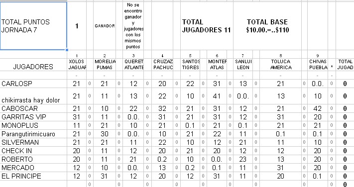 fecha 7, se inscribieron 11 $ premio $110.00
