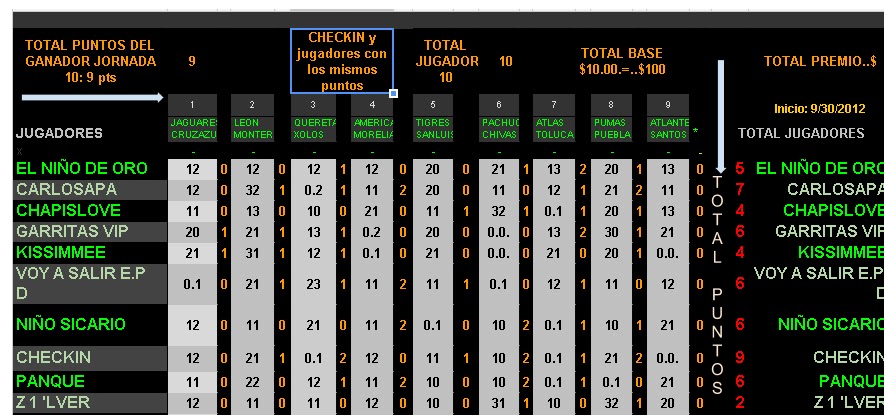 TCTORNEOS te invita a participar, adquiere tu MEMBRESIA! por solo $5.00 usd. por todo el torneo 2012 Participacion por jornada usd1.00 Requisitos: Contar con un email particular, una cuenta bancaria para deposito de tus ganancias, aceptar el reglamento de la sociedad, ser amateur, (no se aceptan profesionales) (consulta formas de pago y cobro) E-mail del $ Para ponerte en contacto con nosotros, escribenos al E-MAIL del DINERO: tctorneos@gmail.com Se hace la retencion del 5% del importe del premio para efectos de gasto de recuperacion de admon. y diseño sitio oficial. Visita la pagina de la FEMEXFUT checa los partidos en la pagina de la FEMEXFUT Consulta el calendario de juegos HAS click Aqui