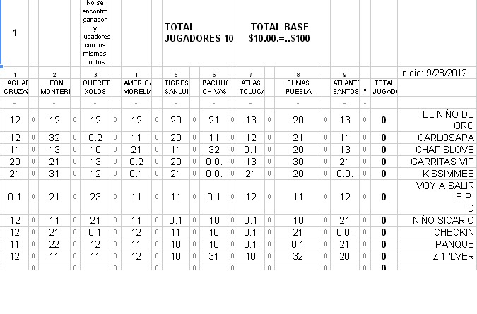 se inscribierin 10 jugadores para la fecha 10 para una bolsa e $100.00