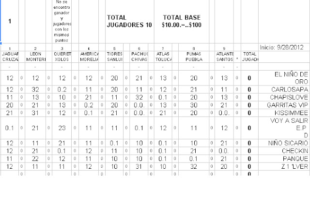TCTORNEOS te invita a participar, adquiere tu MEMBRESIA! por solo $5.00 usd. por todo el torneo 2012 Participacion por jornada usd1.00 Requisitos: Contar con un email particular, una cuenta bancaria para deposito de tus ganancias, aceptar el reglamento de la sociedad, ser amateur, (no se aceptan profesionales) (consulta formas de pago y cobro) E-mail del $ Para ponerte en contacto con nosotros, escribenos al E-MAIL del DINERO: tctorneos@gmail.com Se hace la retencion del 5% del importe del premio para efectos de gasto de recuperacion de admon. y diseño sitio oficial. Visita la pagina de la FEMEXFUT checa los partidos en la pagina de la FEMEXFUT Consulta el calendario de juegos HAS click Aqui