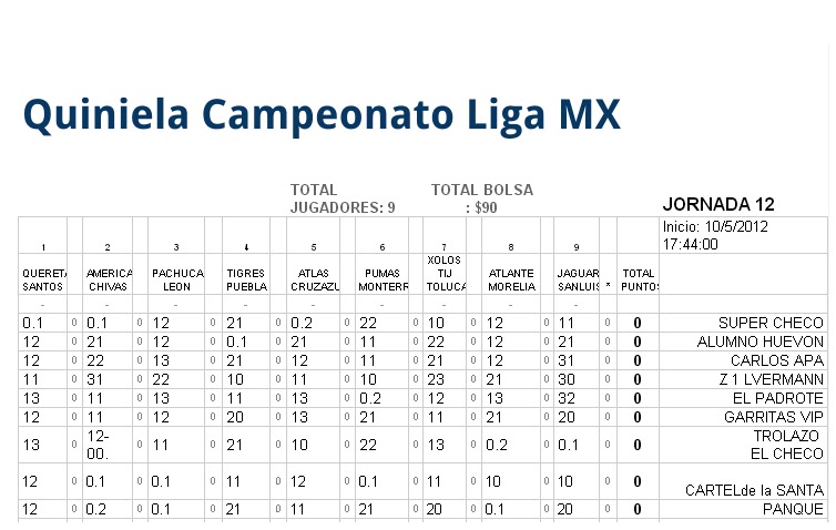 fecha 12 se inscribieron 9 jugadores