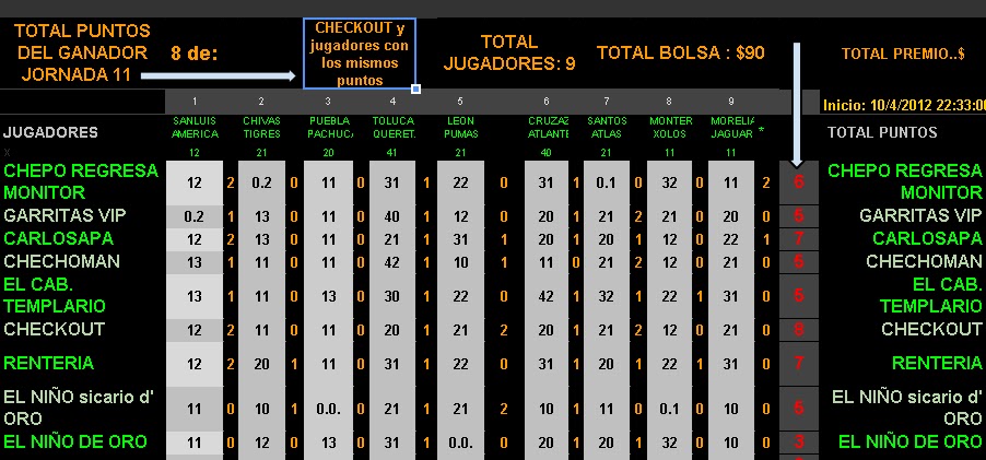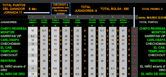 Ganador unico de la fecha 11 Checo $90.00 con 8 pts