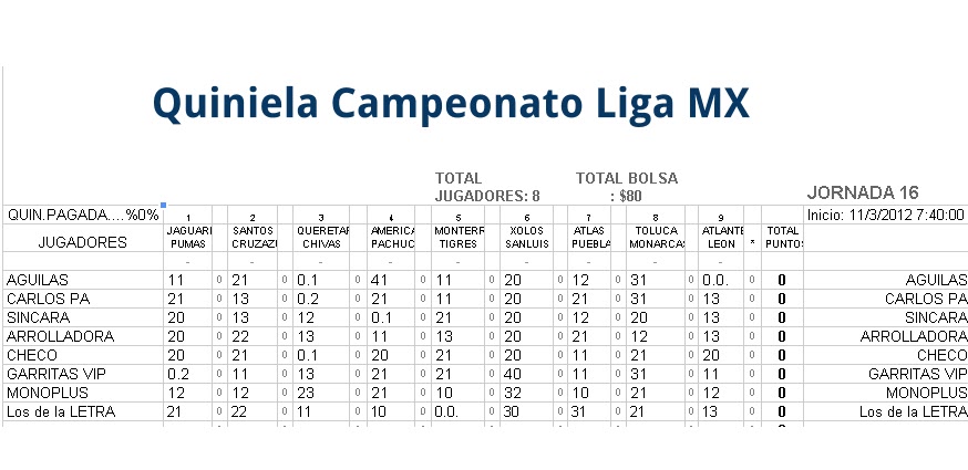 Fecha 16 y penultima se inscribieron 8 $80.00