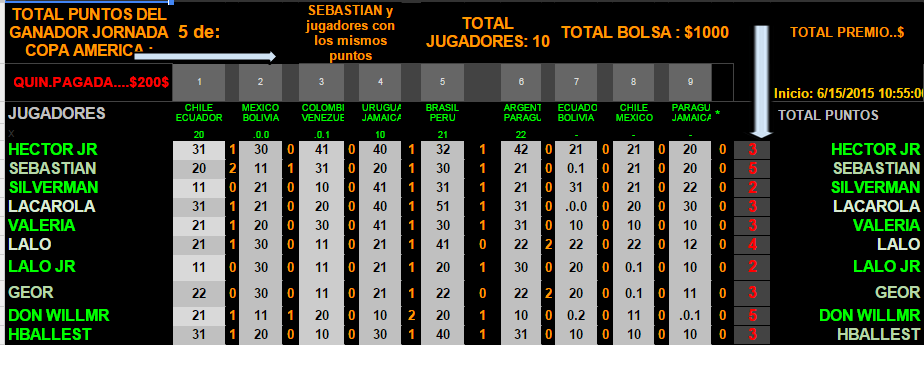 TCTORNEOS te invita a participar, adquiere tu MEMBRESIA! por solo $5.00 usd. por todo el torneo 2012 Participacion por jornada usd1.00 Requisitos: Contar con un email particular, una cuenta bancaria para deposito de tus ganancias, aceptar el reglamento de la sociedad, ser amateur, (no se aceptan profesionales) (consulta formas de pago y cobro) E-mail del $ Para ponerte en contacto con nosotros, escribenos al E-MAIL del DINERO: tctorneos@gmail.com Se hace la retencion del 5% del importe del premio para efectos de gasto de recuperacion de admon. y diseño sitio oficial. Visita la pagina de la FEMEXFUT checa los partidos en la pagina de la FEMEXFUT Consulta el calendario de juegos HAS click Aqui