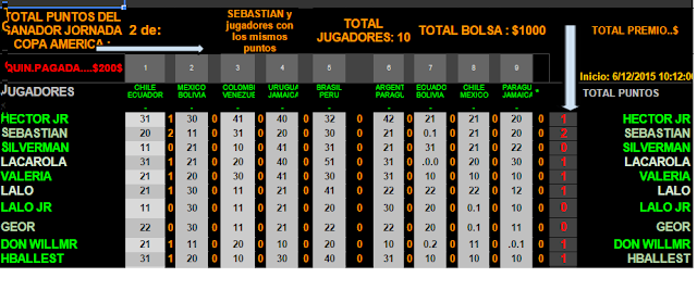 No se enviara diario la actualización pero si pueden comprobarlo entrando a la pagina de las quinielas de la COPA AMERICA CHILE 2015