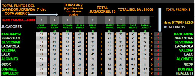 Final 1a etapa de grupos empate Sebastian y Don Wee con 7 puntos (sin incluir aRGENTINA VS URUGUAY) se contabiliza a partir de hoy por la tarde, para no descuadrar el formato